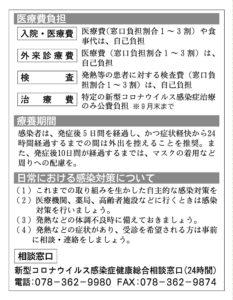 外来、入院とも8日からは他の病気同様に1―3割の自己負担が生じる。高額なコロナ治療薬の薬代は、9月末まで全額公費で賄われ、自己負担はない。検査は医療費に含まれ、有料になる。入院は、高額療養費制度の自己負担限度額から所得に応じ、最大2万円が減額される(9月末まで)。