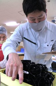 自動車部品を製造する利用者の作業を見守り、進捗を確認したり、製品の重量をチェックしたりするのが主な業務。今後、日常生活の介助や、行事運営にも取り組む。