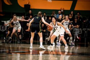カナダ東部、ハリファックスのセント・メアリーズ大学3回生。同大学が所属する「AUS」リーグで優勝、地区優勝の8チームで争う全国大学大会でベスト4。チームメイトはみなカナダ人。身長170センチの小林さんはチームでは小柄で、ボールを運び、試合をつくるポイントガードのポジション。コート全体を見渡す、バスケットIQの高さ、特に危機を未然に摘み取る守備力が評価され、スターティングメンバーに名を連ねる。「カナダ人選手は大きく、身体能力が高い。足の速さを含む素早さ、技術は日本人が高く、日本人選手が来れば活躍できる」とみている。