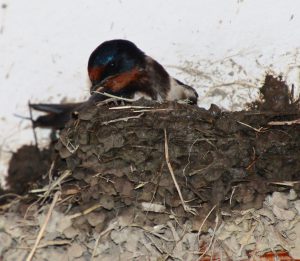 昨年以前にできた”中古物件”を再利用するケースもあるが、今まさに”新築中”の巣では、ツバメがひっきりなしに出入りし、水田などから運んできた泥やわらなどで、忙しく「おうちづくり」に励んでいる。