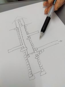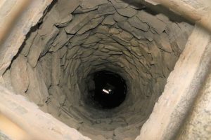 井上さんによると、伊賀上野城にある井戸には抜け穴があるとされ、この施工を担当したのが先祖と伝わっている。口伝によると、石積みの井戸には3つの横穴が掘られ、上から2つは「偽物」で、途中で行き止まりになっている。最も深い位置にある穴が城外につながっており、いったん水に入って横穴をくぐると水面上に出られる構造。そこから通路のように抜け道が伸びているという。