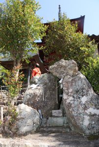 抜け道の到着地点は、柏原八幡宮の三重塔に上がる石段途中にある祠と述べた人が複数人。現地を確認すると、石で組まれた小さな祠がある。